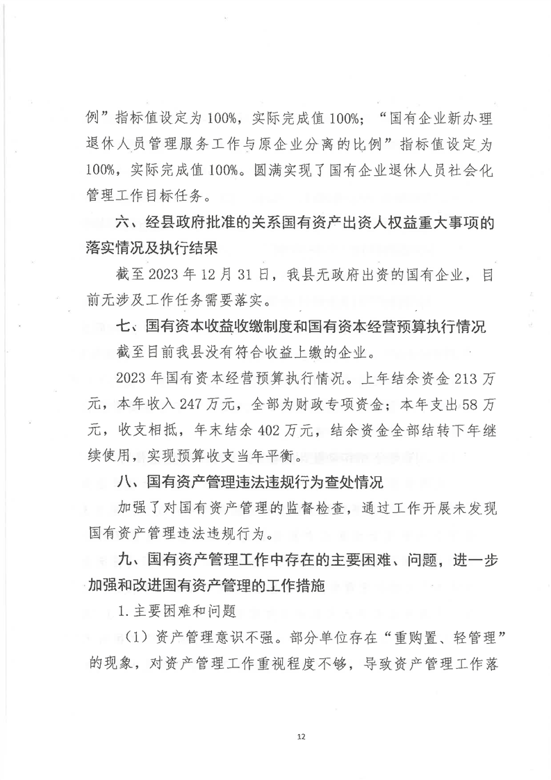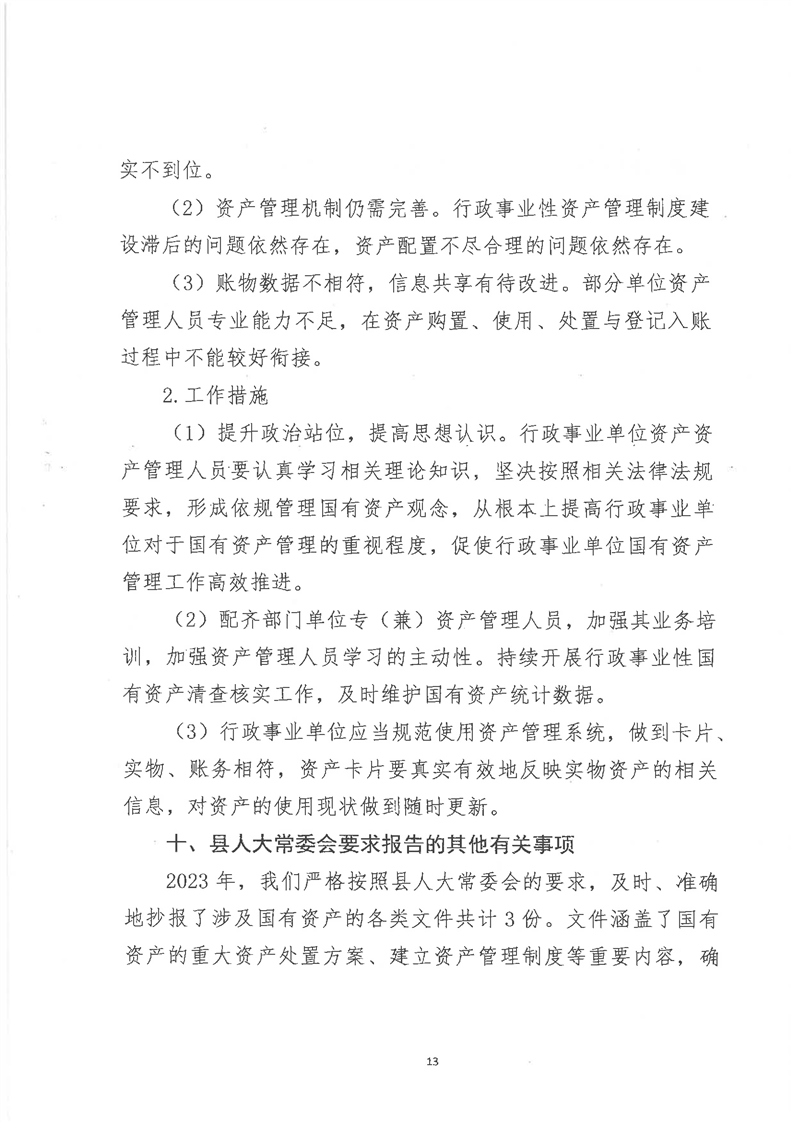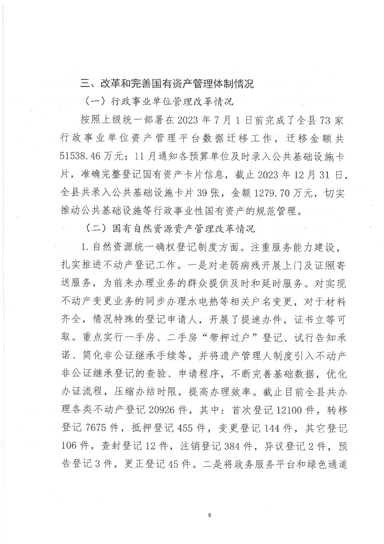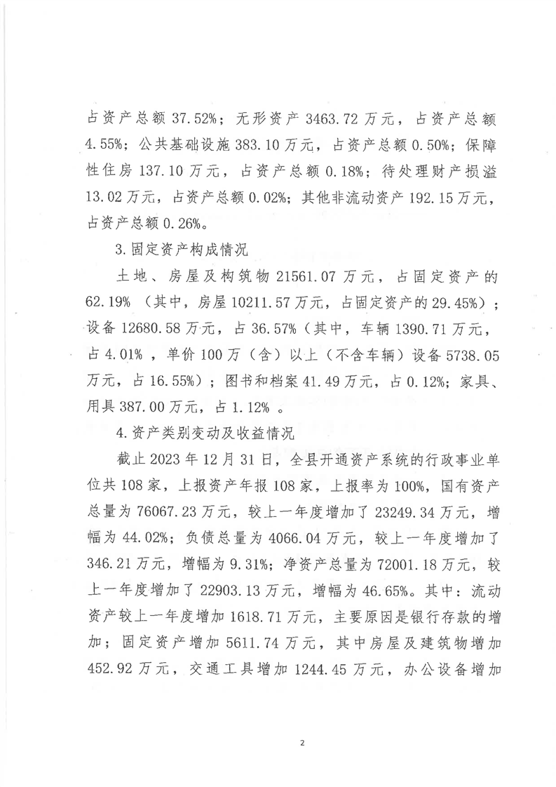 关于全县2023年度国有资产管理情况的综合报告
