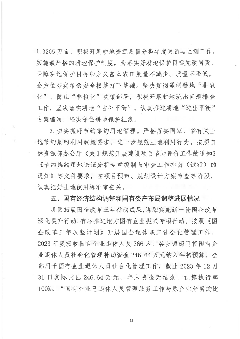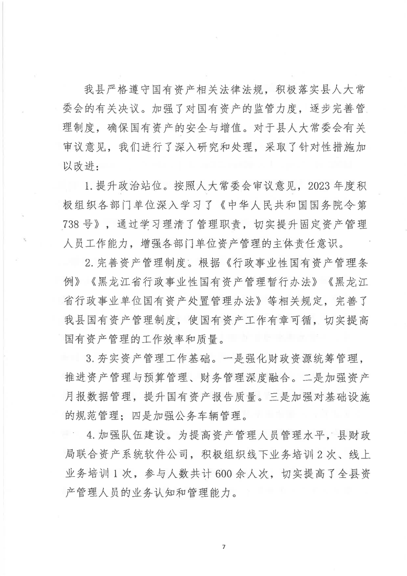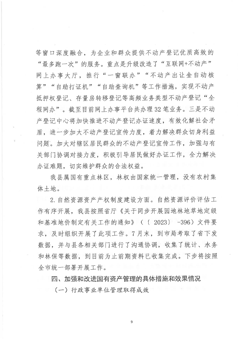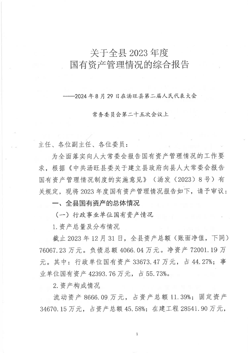 关于全县2023年度国有资产管理情况的综合报告