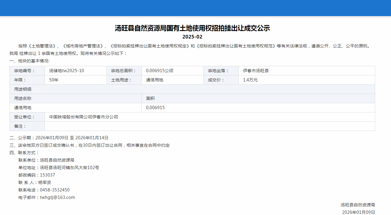 汤旺县自然资源局国有土地使用权招拍挂出让成交公示2025-2