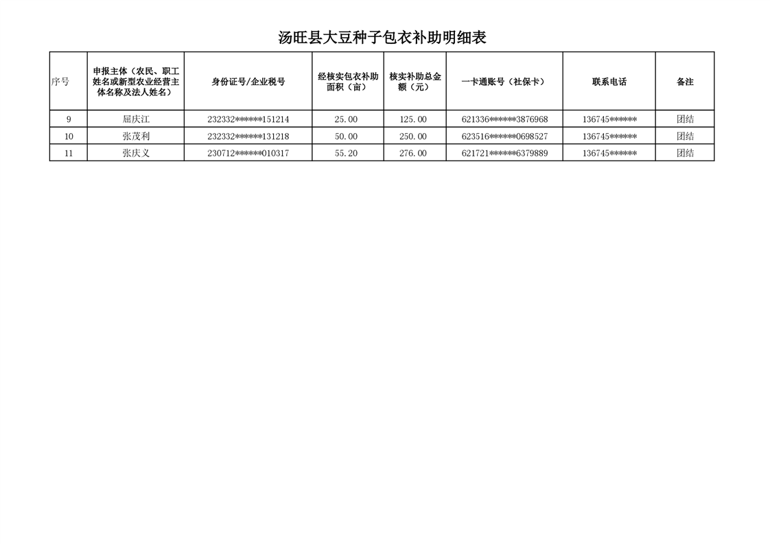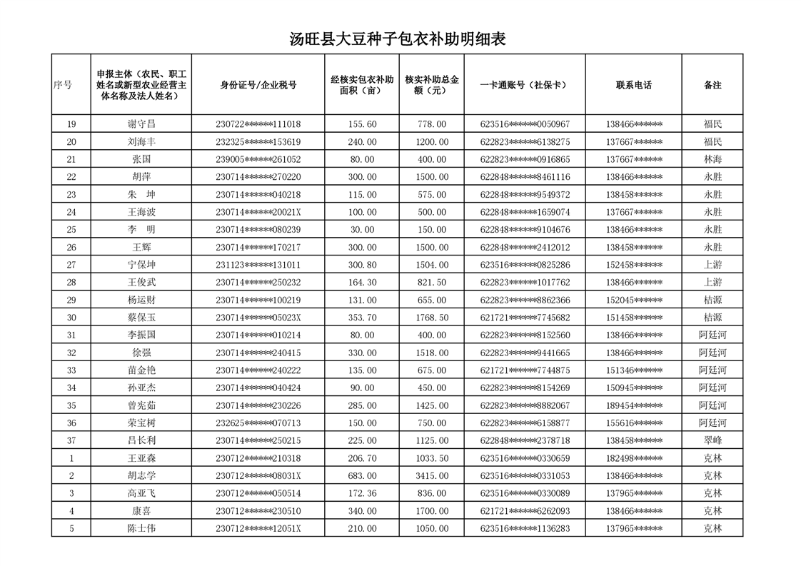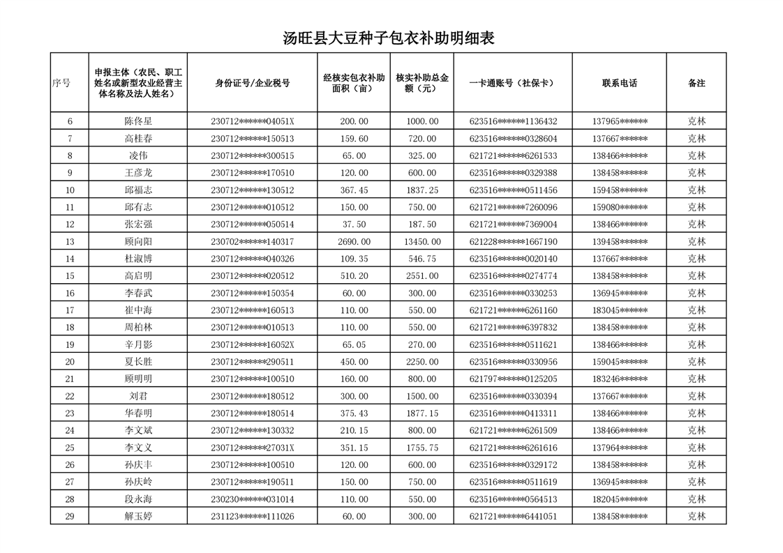 汤旺县大豆种子包衣不补贴发放明细
