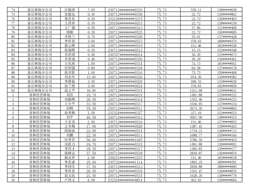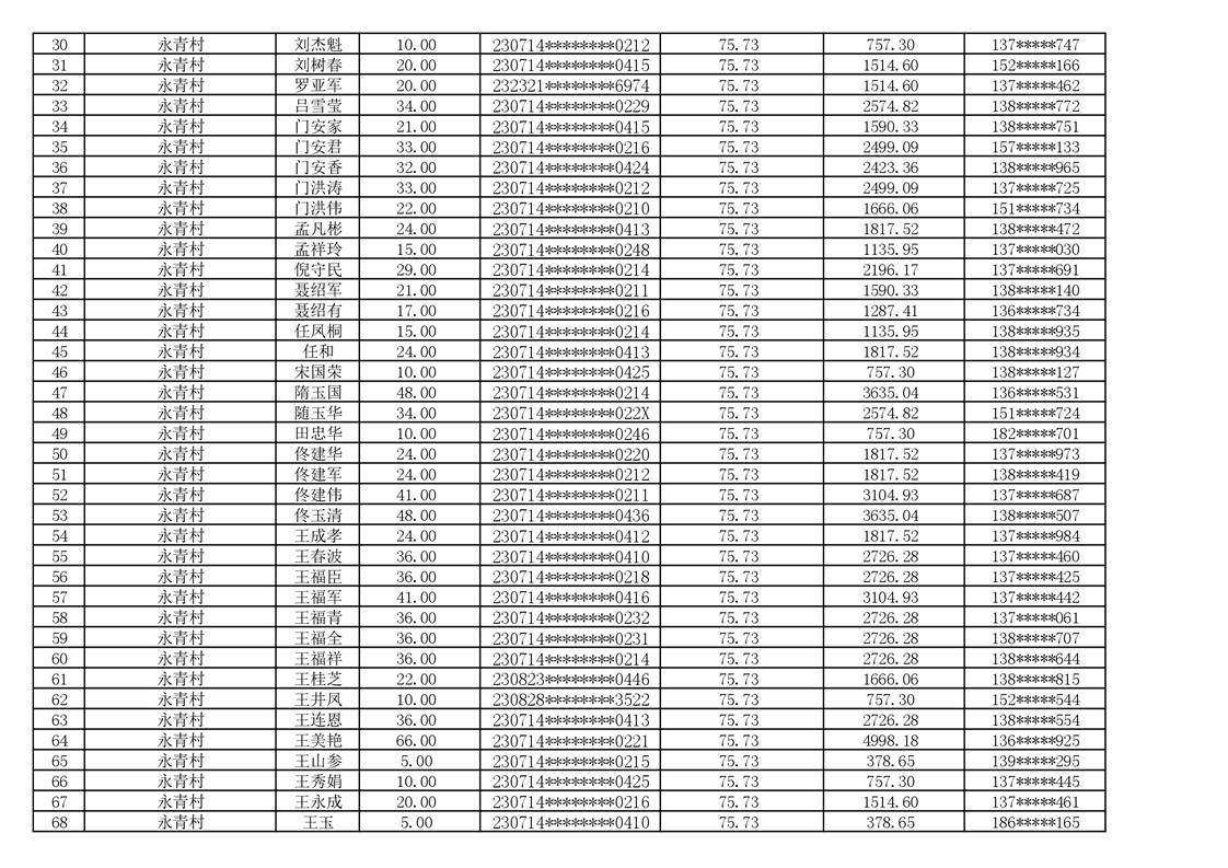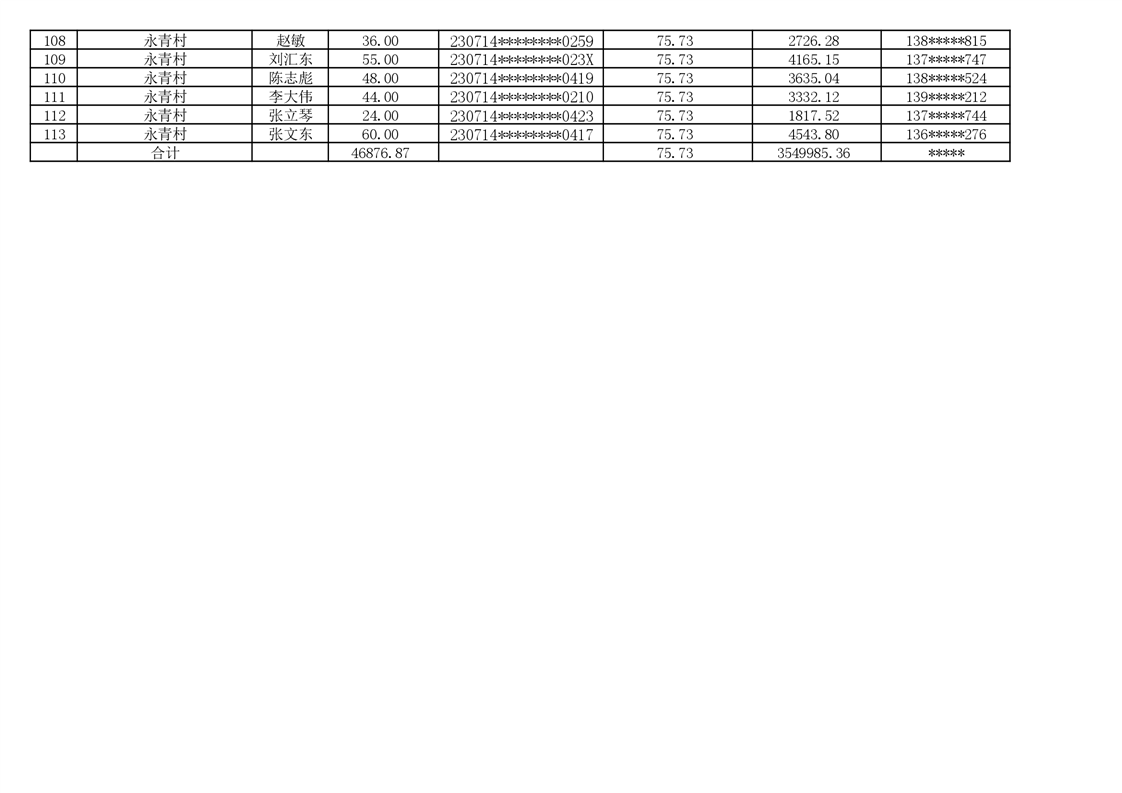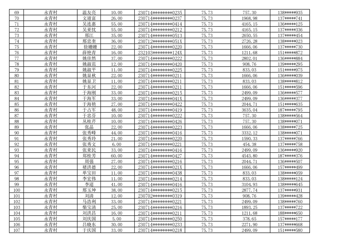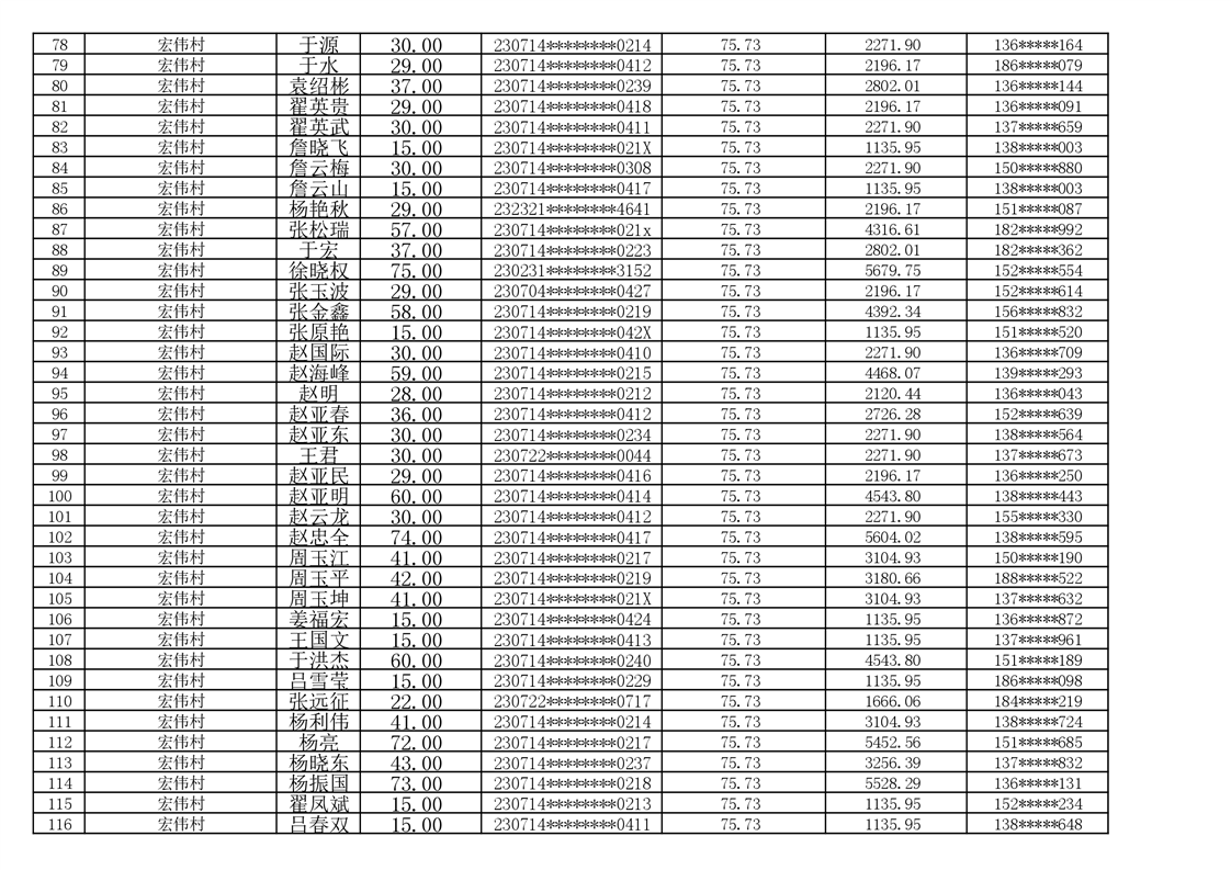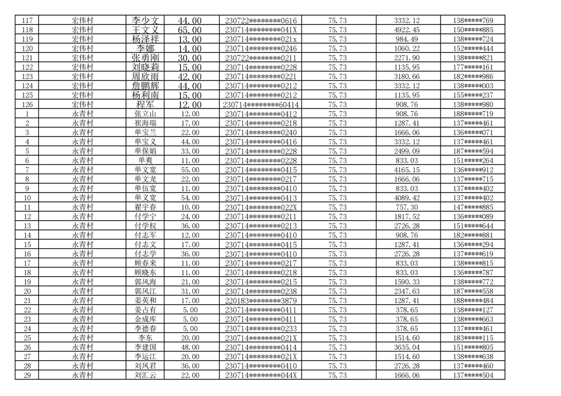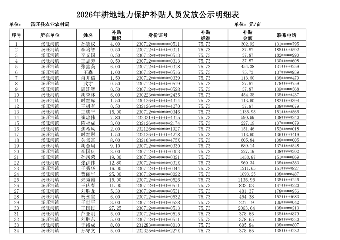 2026年耕地地力保护补贴人员发放公示明细表