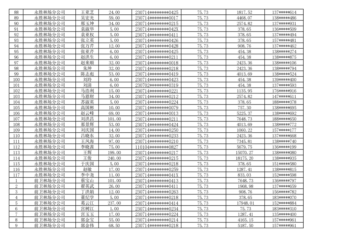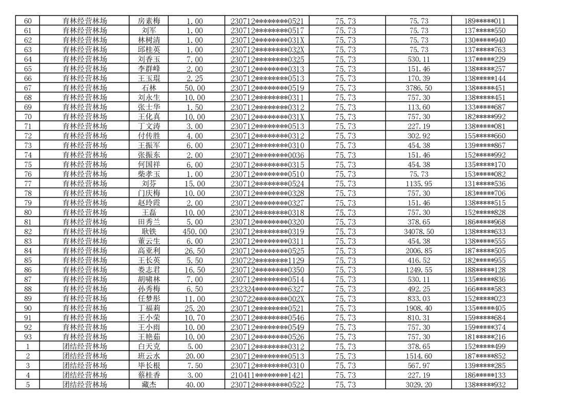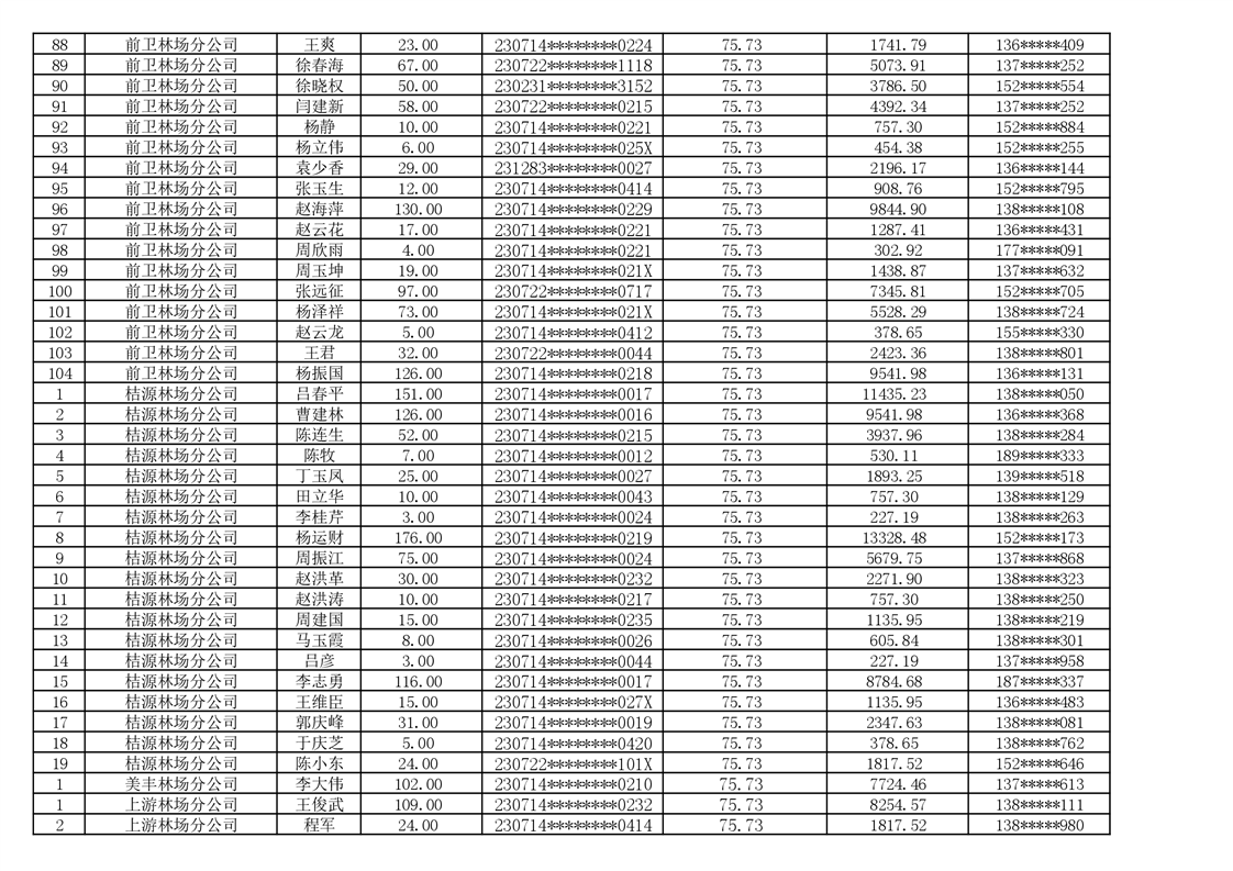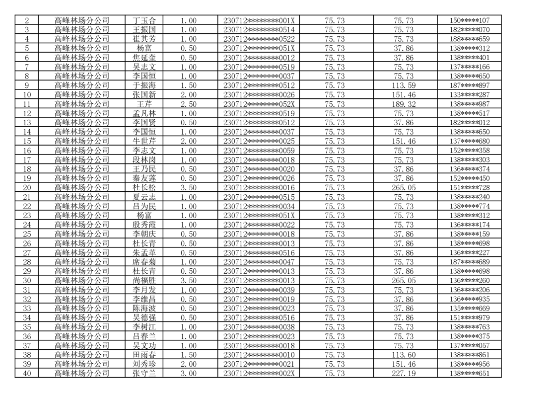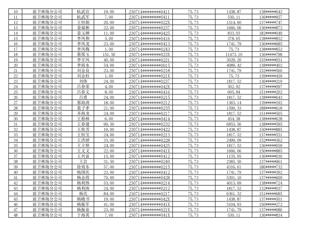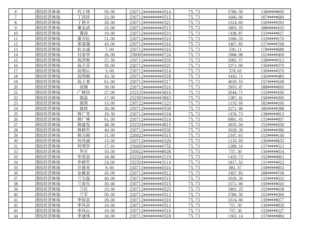 2026年耕地地力保护补贴人员发放公示明细表