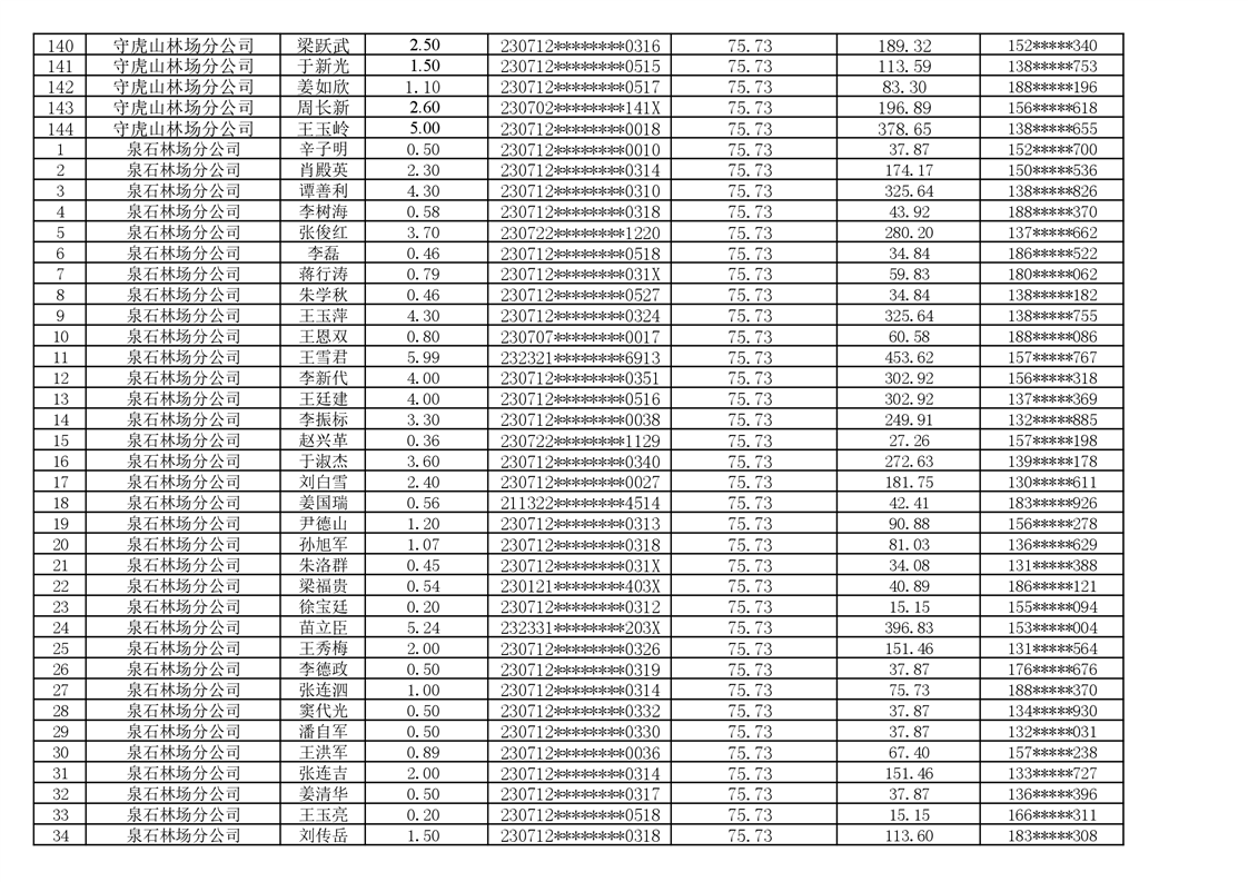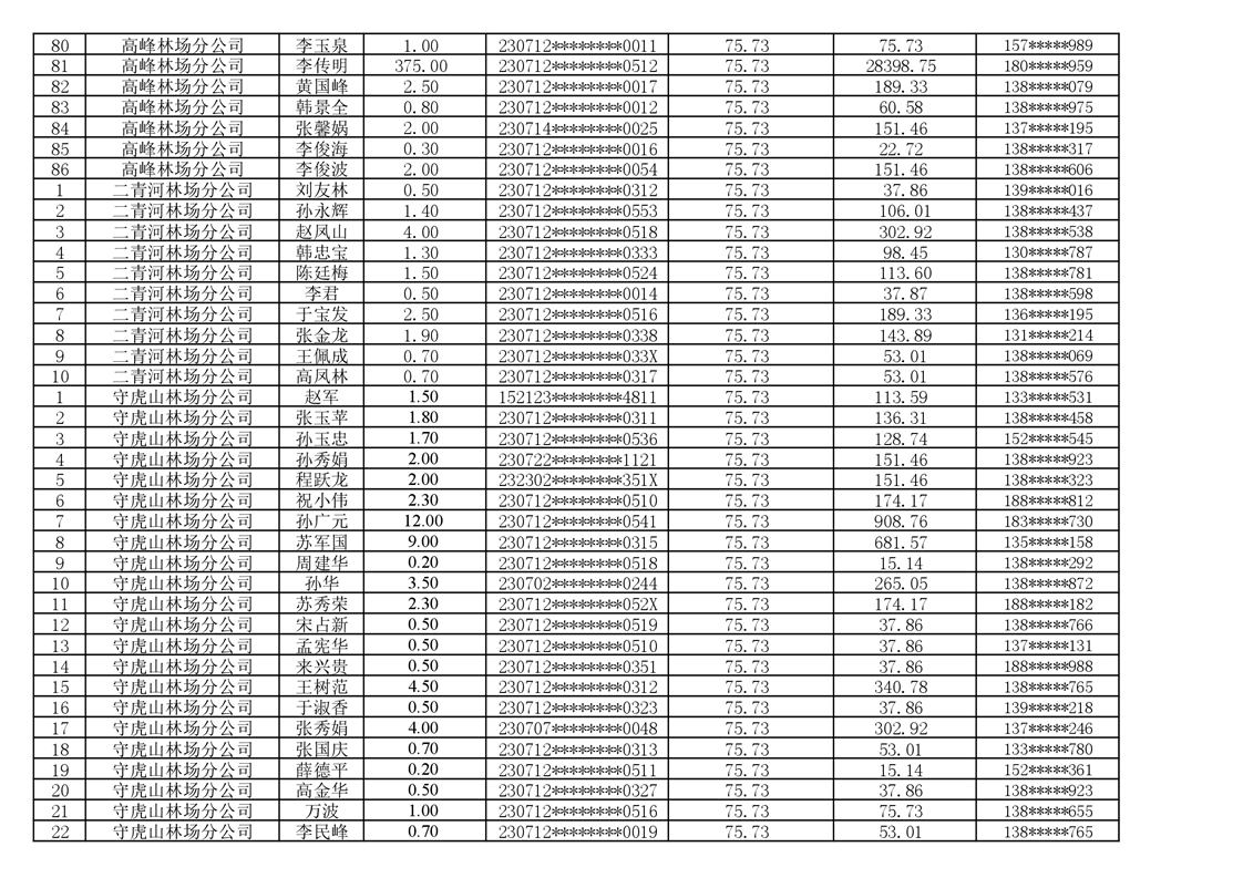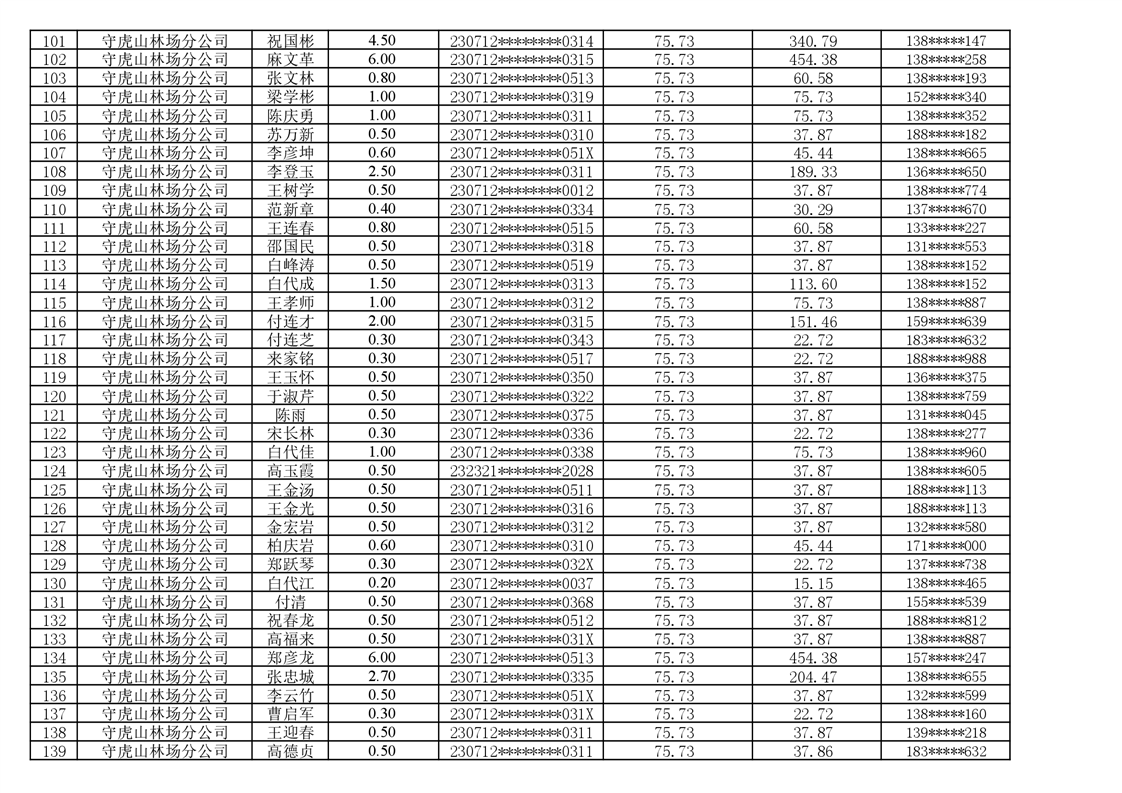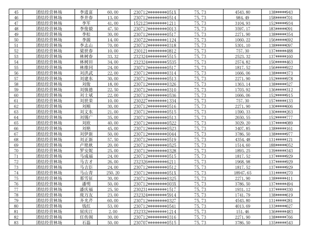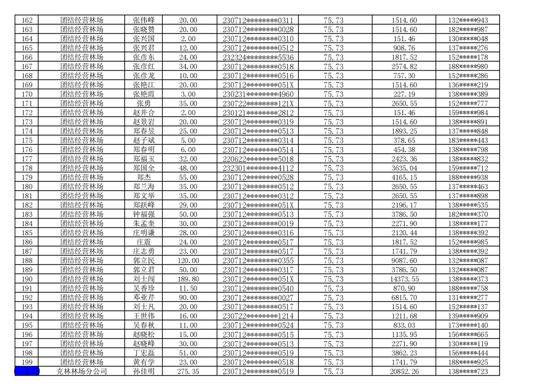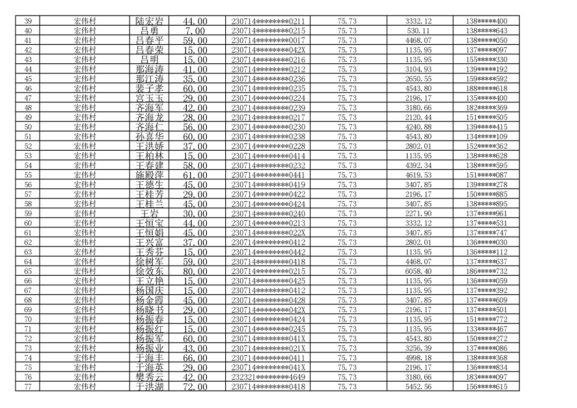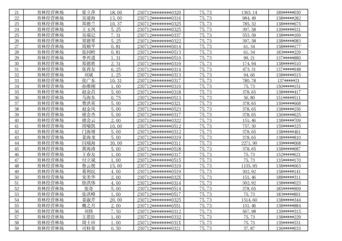 2026年耕地地力保护补贴人员发放公示明细表