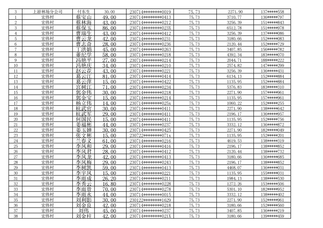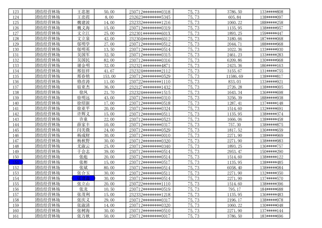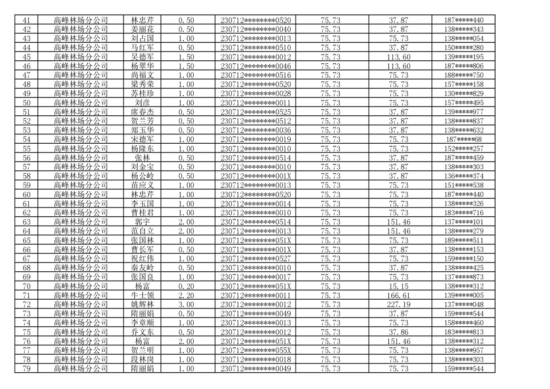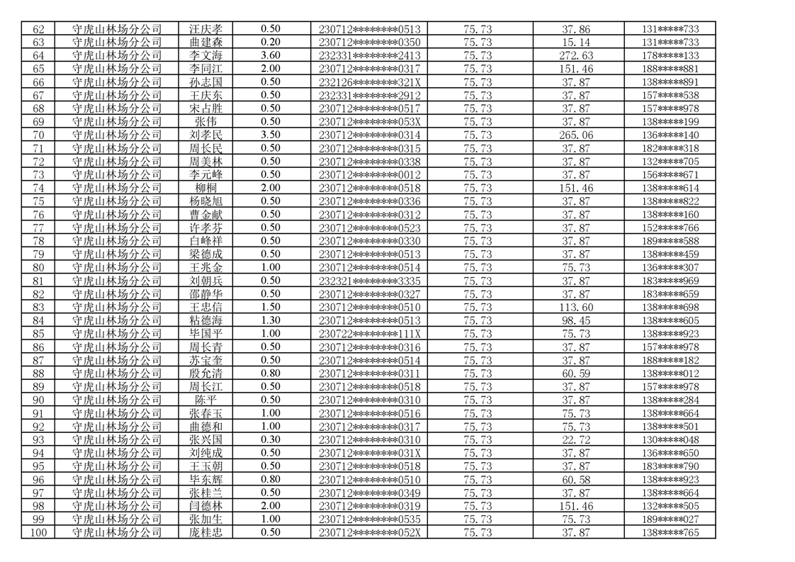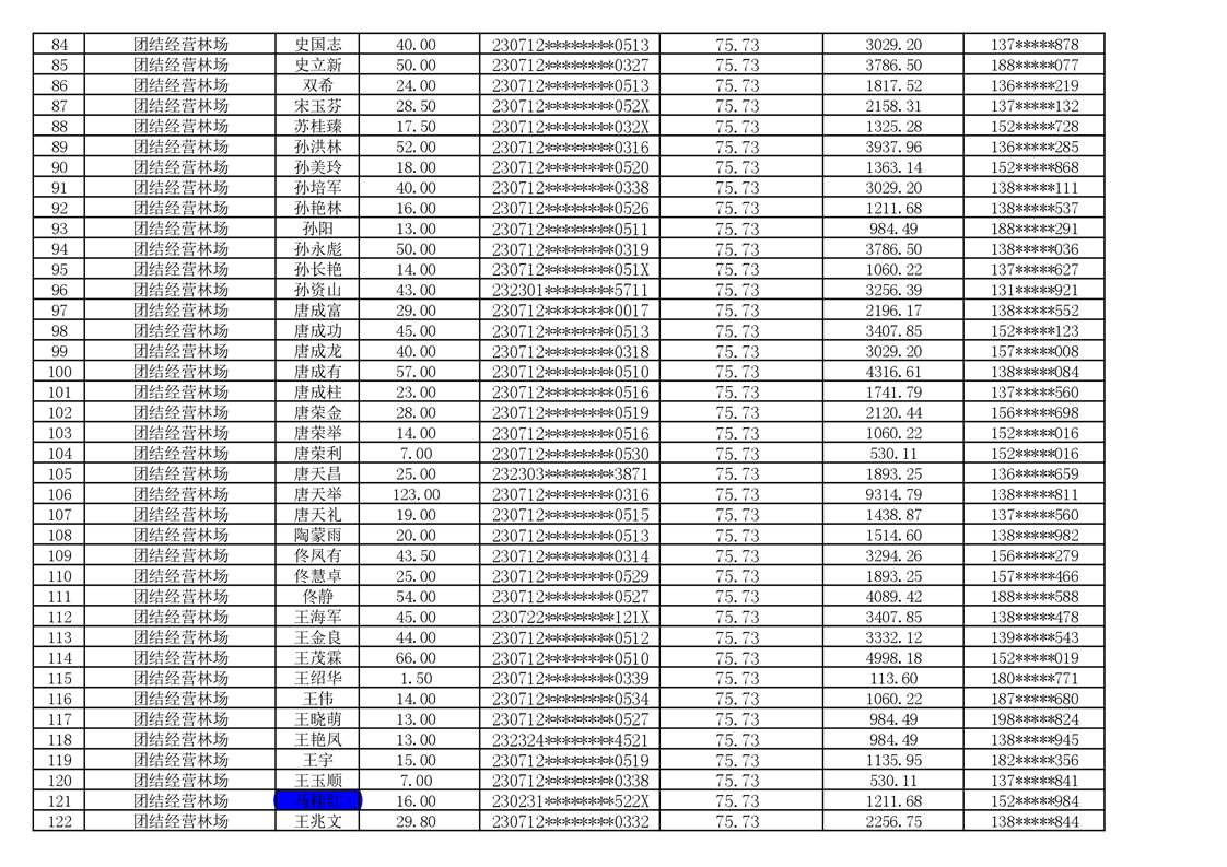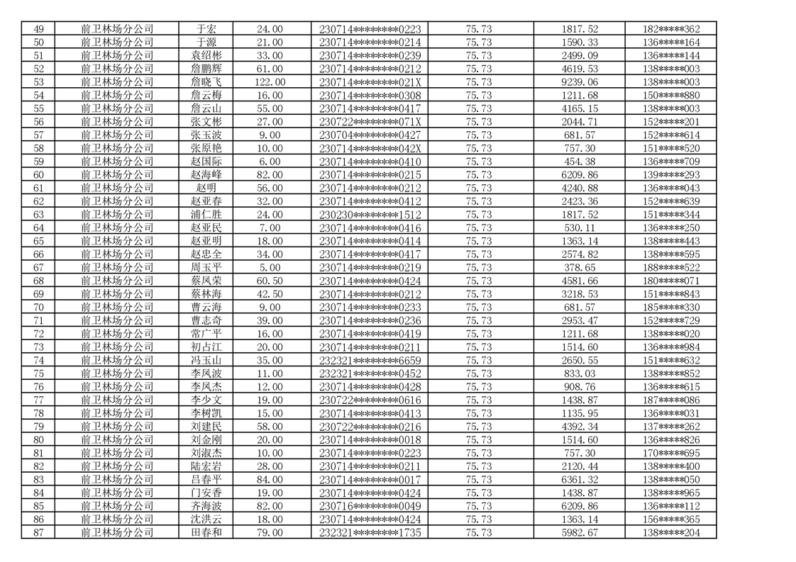 2026年耕地地力保护补贴人员发放公示明细表