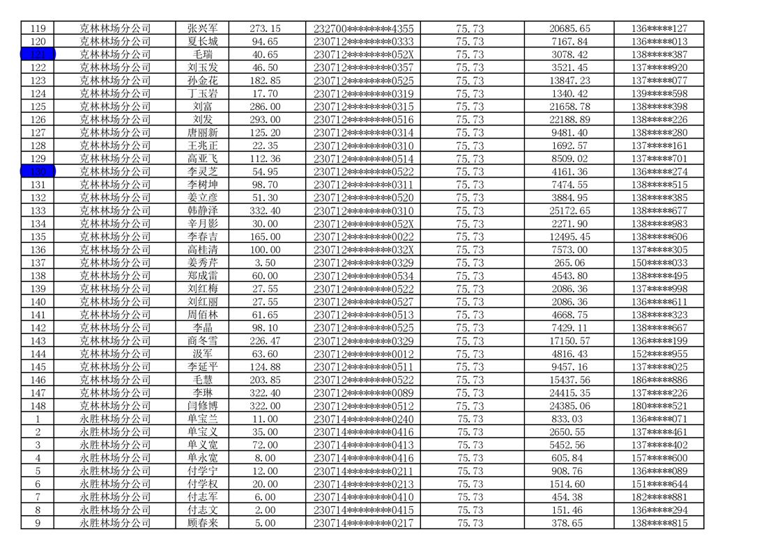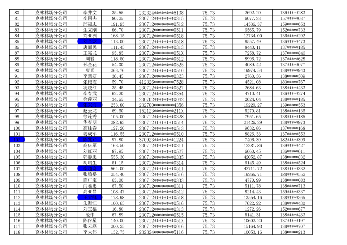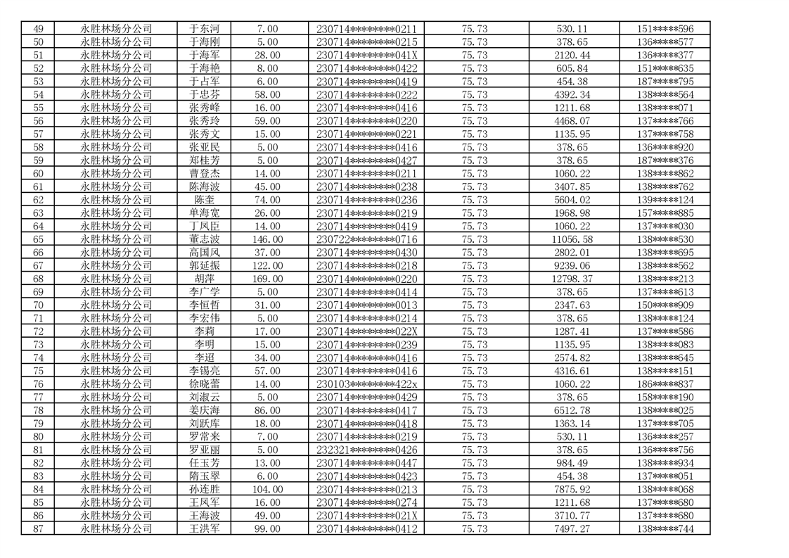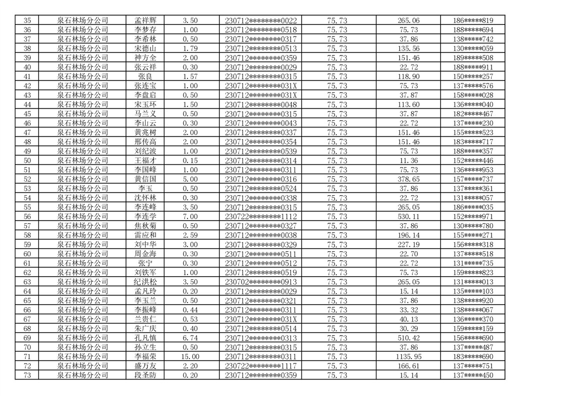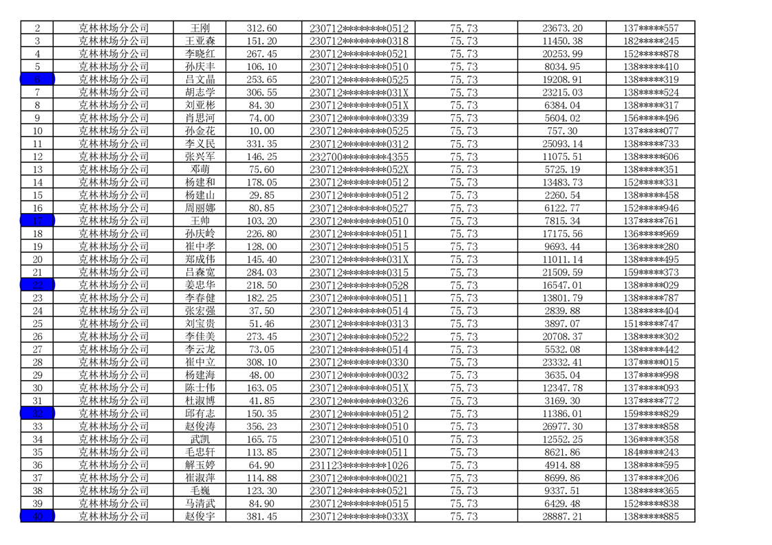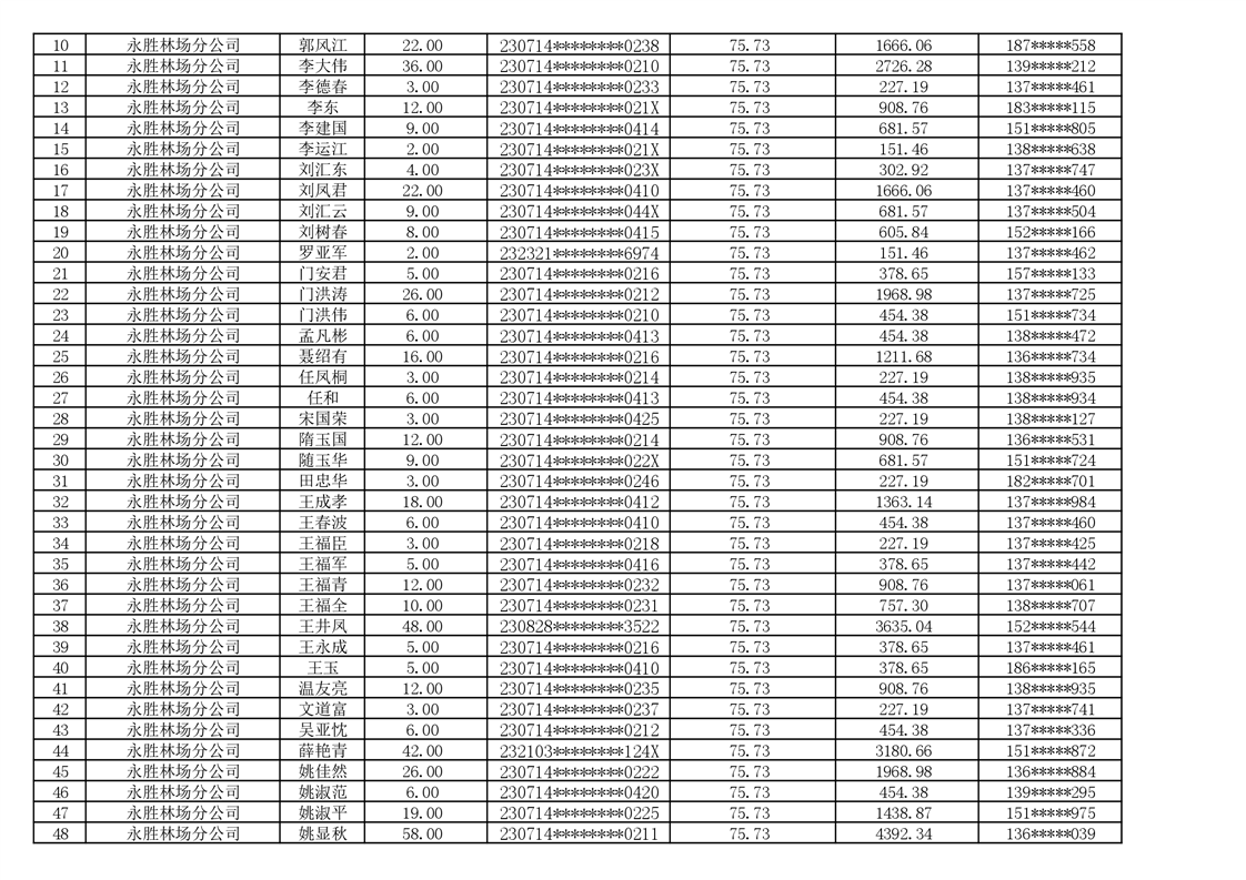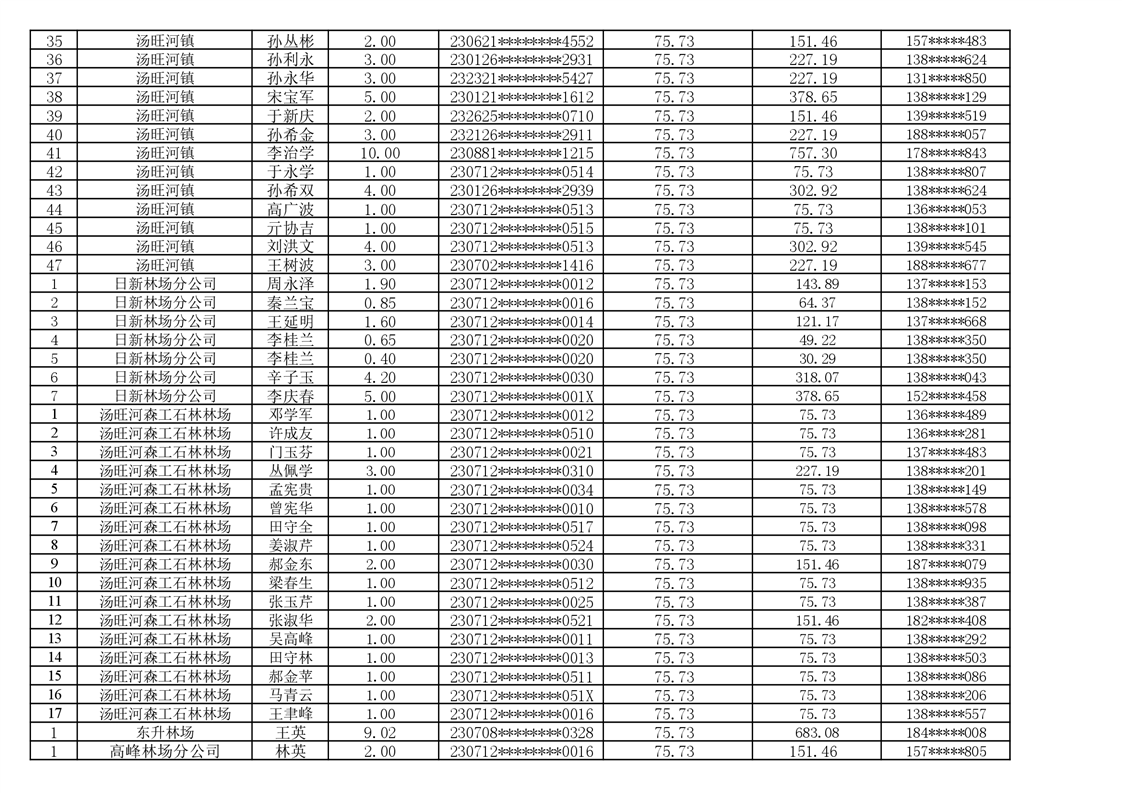 2026年耕地地力保护补贴人员发放公示明细表