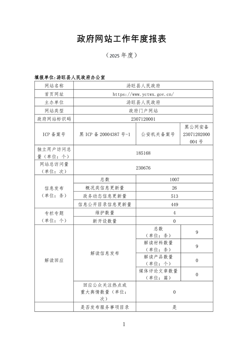 伊春市汤旺县政府网站工作年度报表(2025年度)